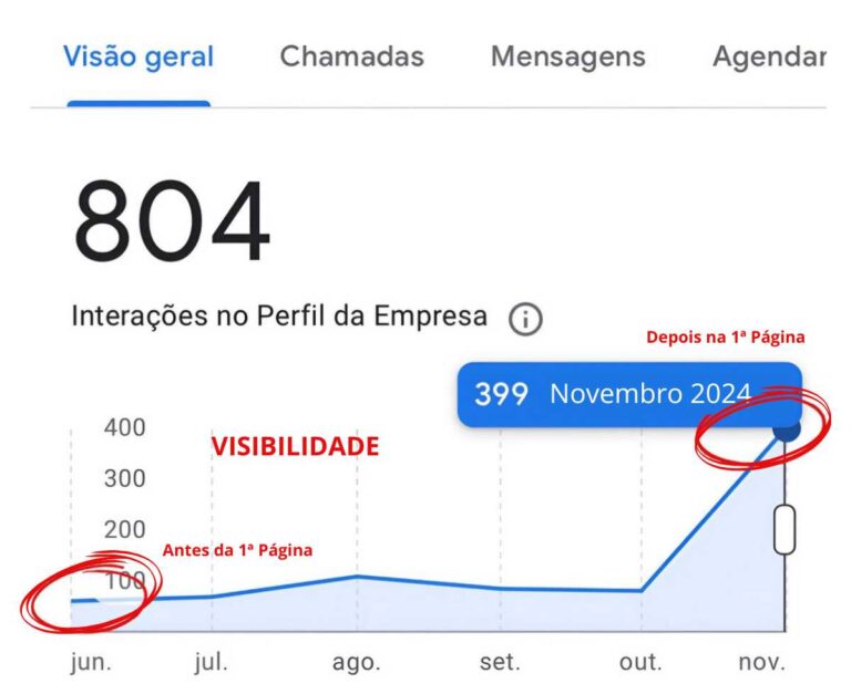 Veja a diferença de visibilidade e visitas no perfil antes e após aparecer na primeira página e dominar o topo do Google
